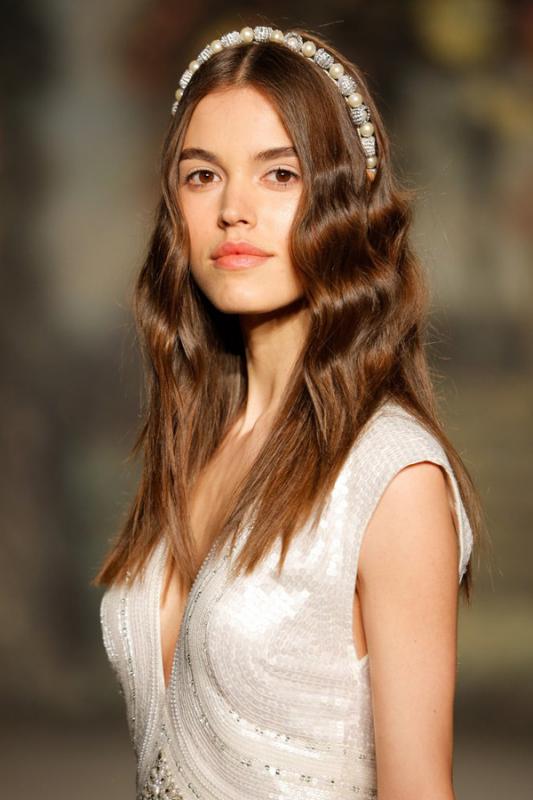 Monique Lhuillier vẫn trung thành với phụ kiện bờm tóc đính đá của mình từ năm ngoái.