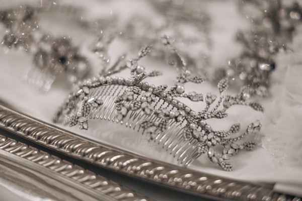 Jenny Packham chọn phụ kiện bờm đính đá/hoa và trâm cài tóc trong BST mới nhất năm nay.