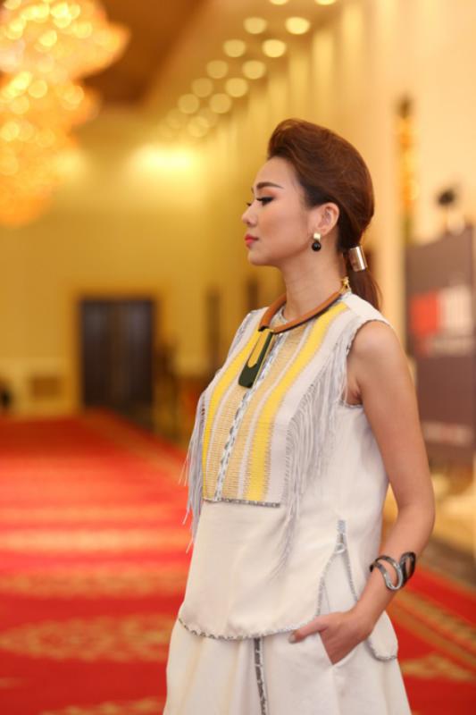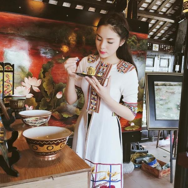 Đặng Thu Thảo đẹp dịu dàng với kiểu tóc buộc nửa với những lọn xoăn nhẹ, kiểu mái bằng lưa thưa cũng giúp cho mái tóc buộc nửa của người đẹp thêm phần trang nhã, tinh tế.