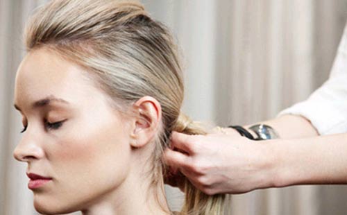 Bước 1: Xịt keo dưỡng lên toàn bộ tóc để khiến mái tóc vào nếp và mềm mại hơn. Kiểu tóc phồng cổ điển này thích hợp với mọi độ dài của tóc và mọi kiểu dáng (tóc xoăn, tóc thẳng, tóc bấm gãy…).