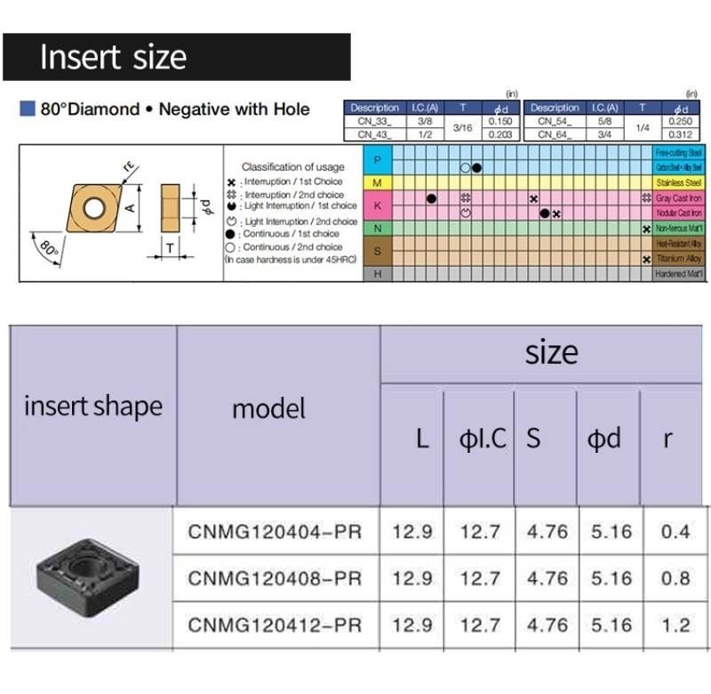 Dụng cụ cắt gọt kim loại Chip tiện CNMG120408-PR sử dụng trong ngành gia công cơ khí, là dụng cụ có độ cứng cao hơn chi tiết gia công, được lắp đặt vào máy công cụ (máy tiện, máy phay, máy bào, máy khoan,..) nhằm phục vụ cho ngành gia công cơ khí, nhằm mục đích chế tạo ra các chi tiết cơ khí, phục vụ cho việc lắp ráp, chế tạo hoặc sửa chữa máy móc, thiết bị.