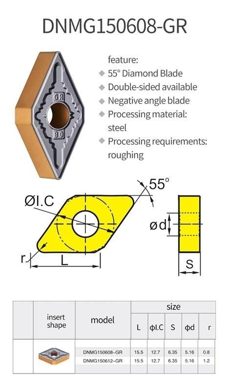 Dụng cụ cắt gọt kim loại Chip tiện DNMG150408-GR sử dụng trong ngành gia công cơ khí, là dụng cụ có độ cứng cao hơn chi tiết gia công, được lắp đặt vào máy công cụ (máy tiện, máy phay, máy bào, máy khoan,..) nhằm phục vụ cho ngành gia công cơ khí, nhằm mục đích chế tạo ra các chi tiết cơ khí, phục vụ cho việc lắp ráp, chế tạo hoặc sửa chữa máy móc, thiết bị.