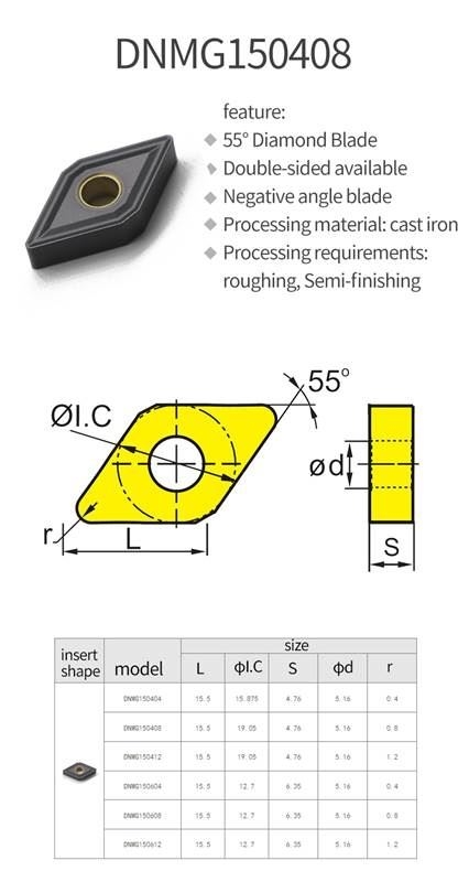 Dụng cụ cắt gọt kim loại Chip tiện DNMG150408 sử dụng trong ngành gia công cơ khí, là dụng cụ có độ cứng cao hơn chi tiết gia công, được lắp đặt vào máy công cụ (máy tiện, máy phay, máy bào, máy khoan,..) nhằm phục vụ cho ngành gia công cơ khí, nhằm mục đích chế tạo ra các chi tiết cơ khí, phục vụ cho việc lắp ráp, chế tạo hoặc sửa chữa máy móc, thiết bị.