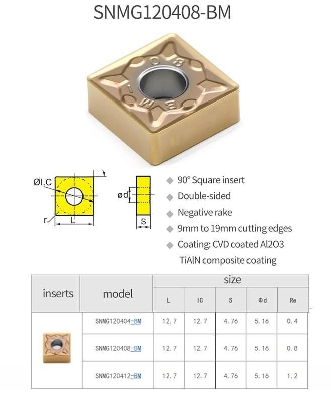 Dụng cụ cắt gọt kim loại Chip tiện SNMG120408-BM sử dụng trong ngành gia công cơ khí, là dụng cụ có độ cứng cao hơn chi tiết gia công, được lắp đặt vào máy công cụ (máy tiện, máy phay, máy bào, máy khoan,..) nhằm phục vụ cho ngành gia công cơ khí, nhằm mục đích chế tạo ra các chi tiết cơ khí, phục vụ cho việc lắp ráp, chế tạo hoặc sửa chữa máy móc, thiết bị.