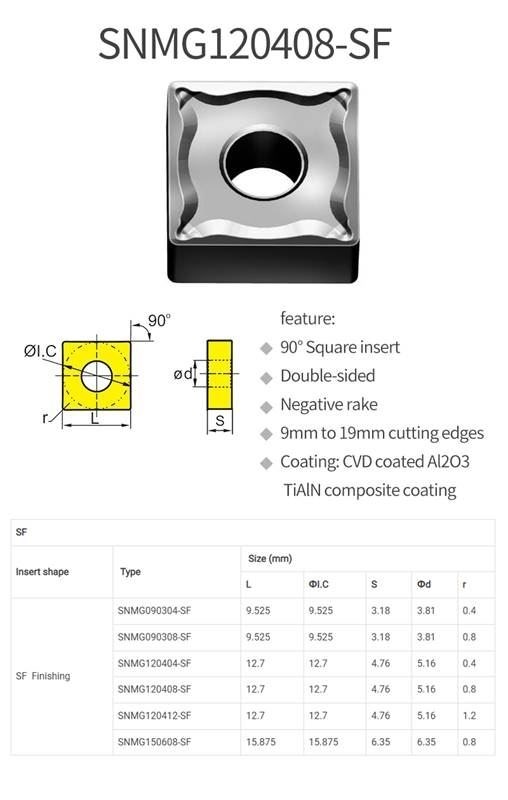 Dụng cụ cắt gọt kim loại Chip tiện SNMG120408-SF sử dụng trong ngành gia công cơ khí, là dụng cụ có độ cứng cao hơn chi tiết gia công, được lắp đặt vào máy công cụ (máy tiện, máy phay, máy bào, máy khoan,..) nhằm phục vụ cho ngành gia công cơ khí, nhằm mục đích chế tạo ra các chi tiết cơ khí, phục vụ cho việc lắp ráp, chế tạo hoặc sửa chữa máy móc, thiết bị.