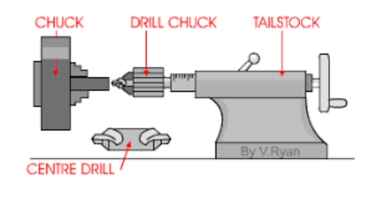 Thường mũi khoan tâm sẽ được kẹp trên ụ động máy tiện bằng bầu kẹp mũi khoan. Khi khoan mũi khoan tâm đứng yên chuyển động tịnh tiến, chi tiết được kẹp trên mâm cặp quay.